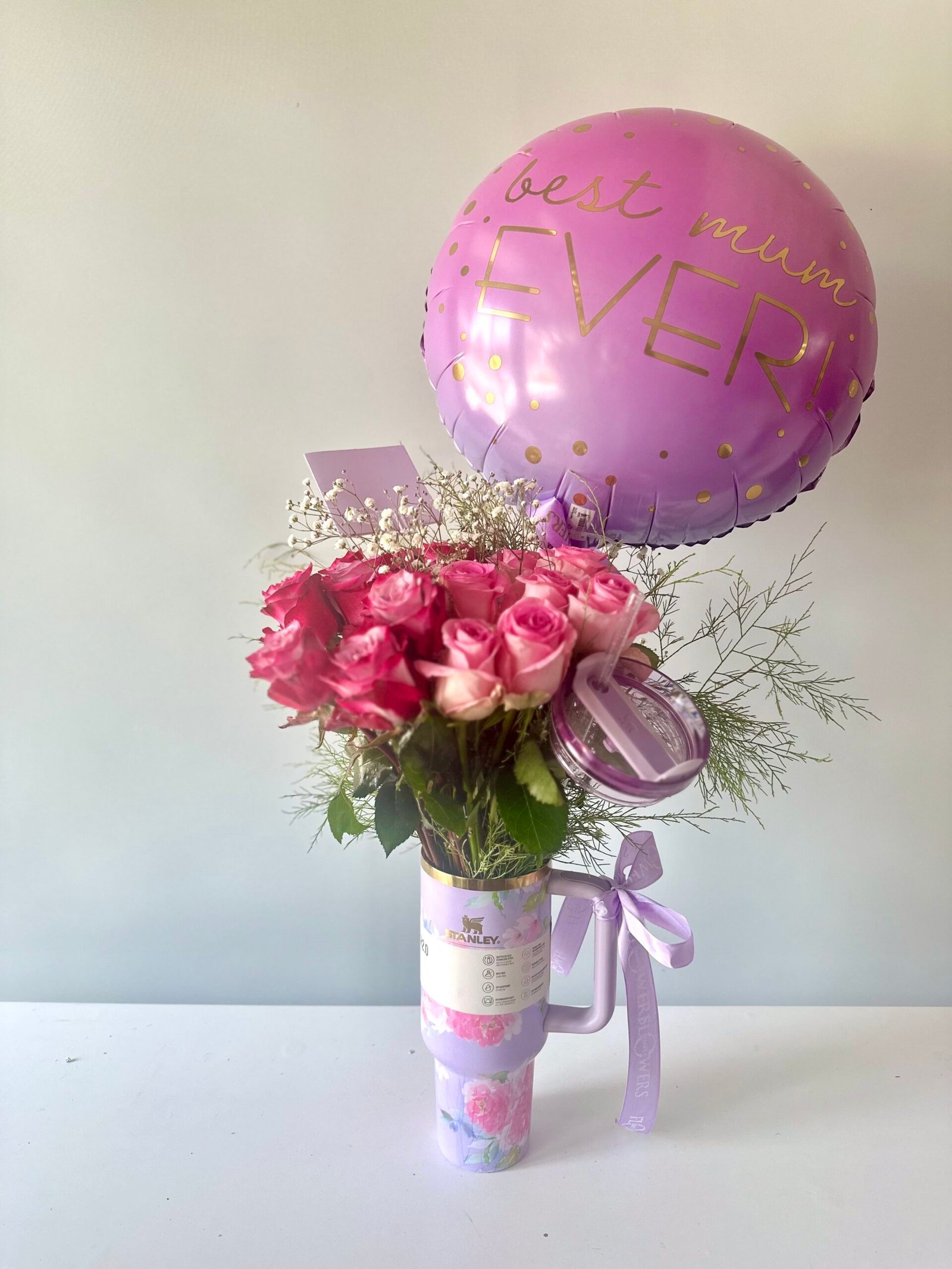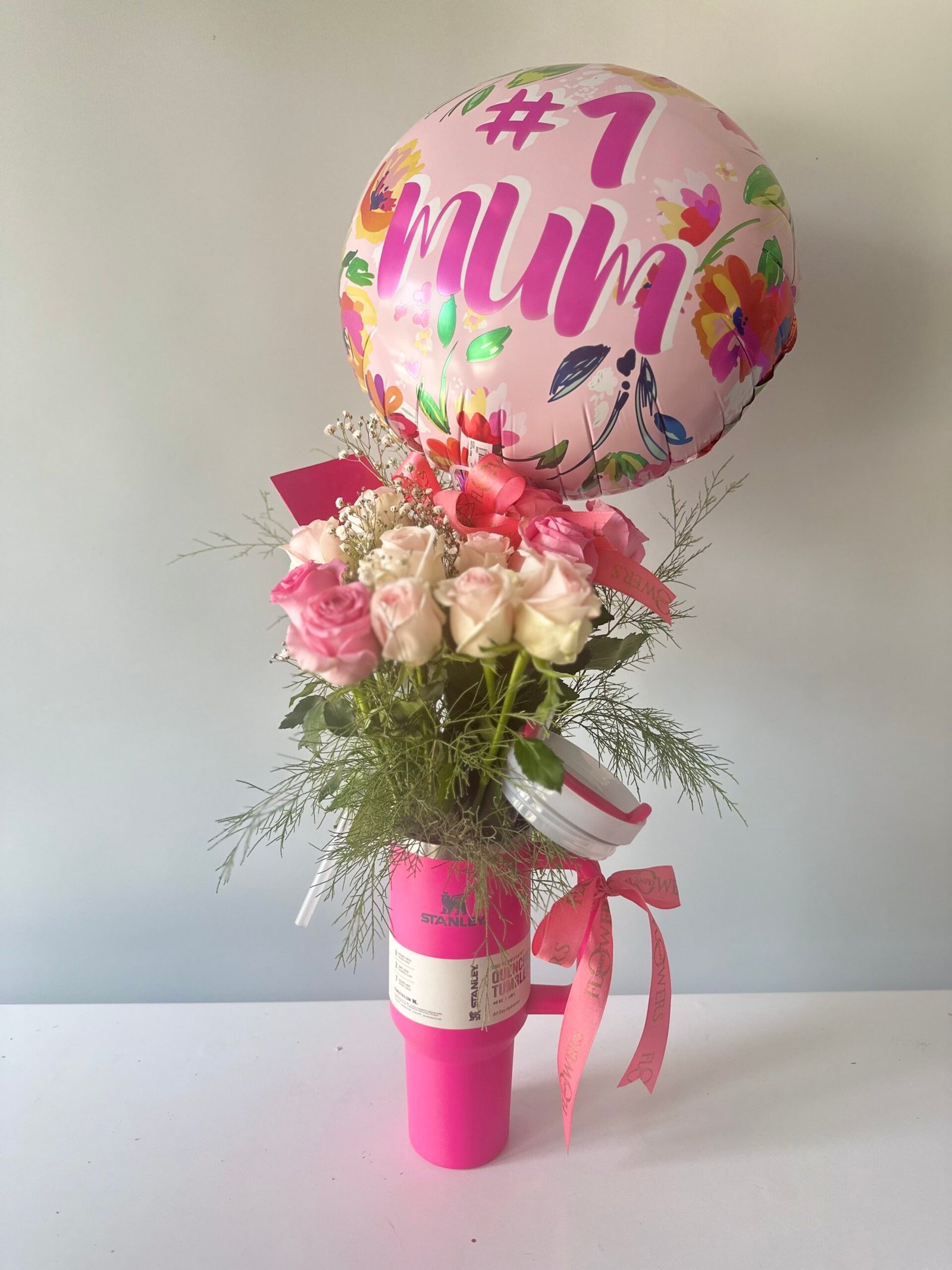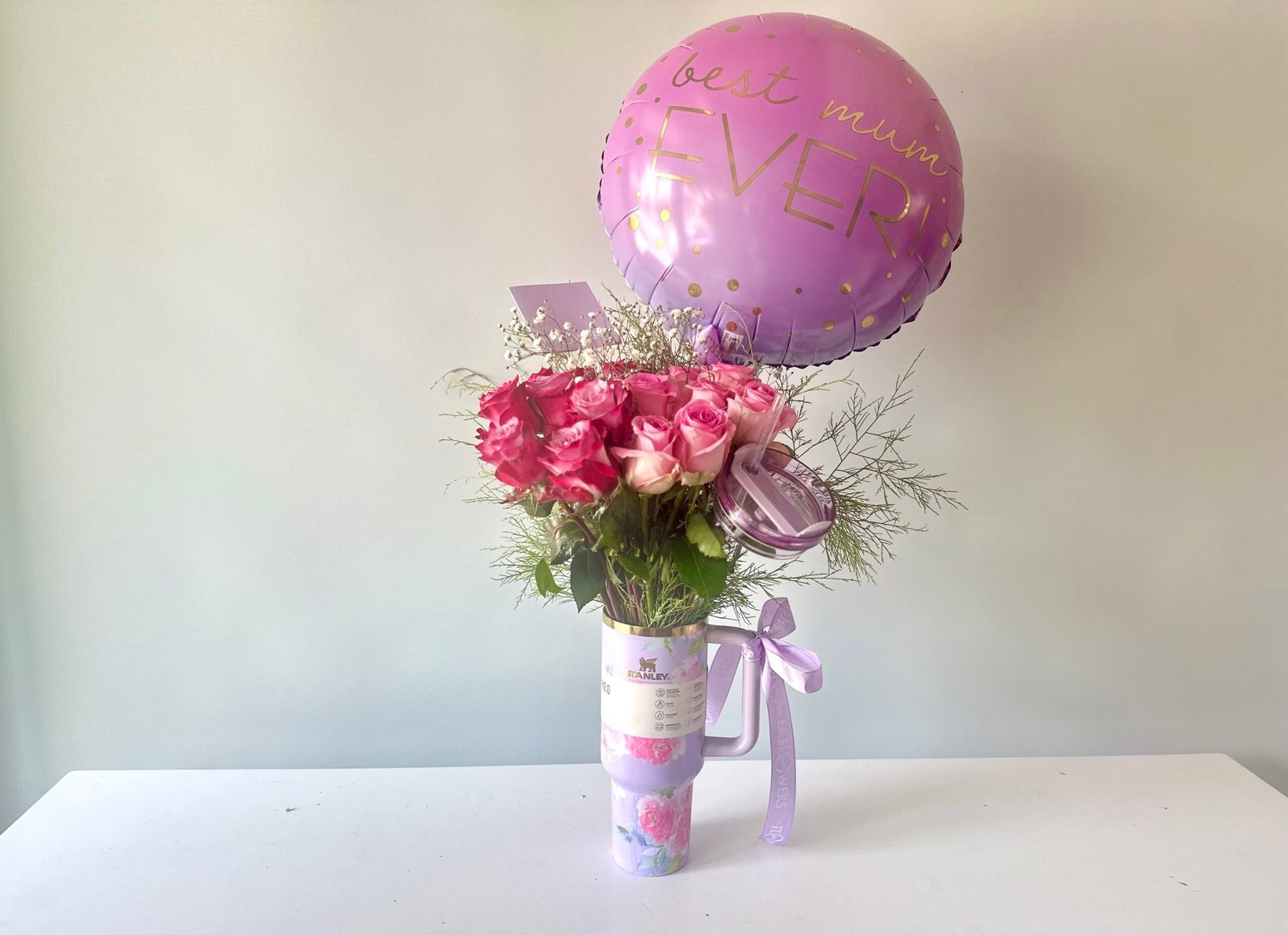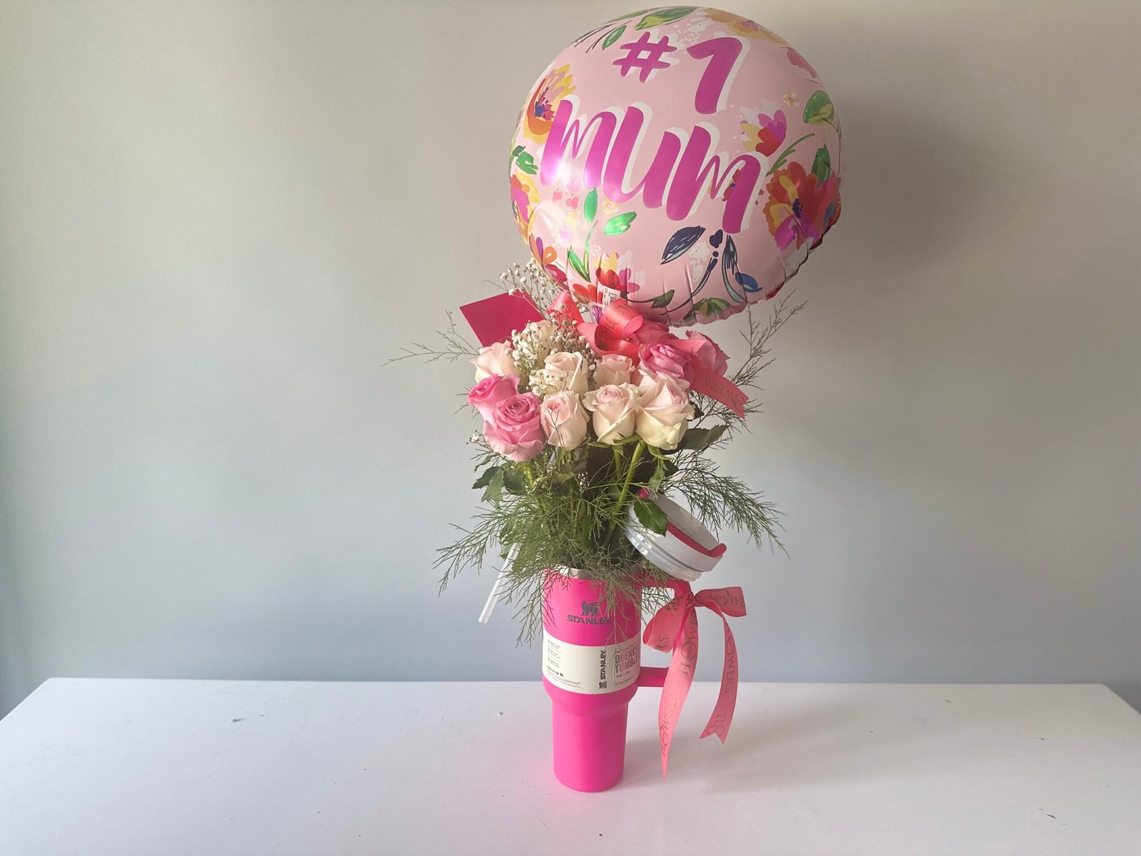 Floral Arrangement in a Stanley Mug & Complimentary Balloon